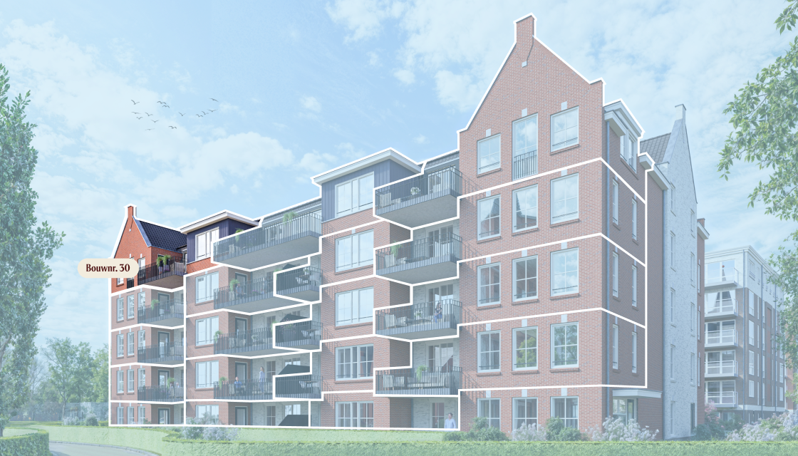 | 30 | Type E | 107 m2 | 2 | 12 m2 | Zuid | 4 | v.a. € 542.500 |