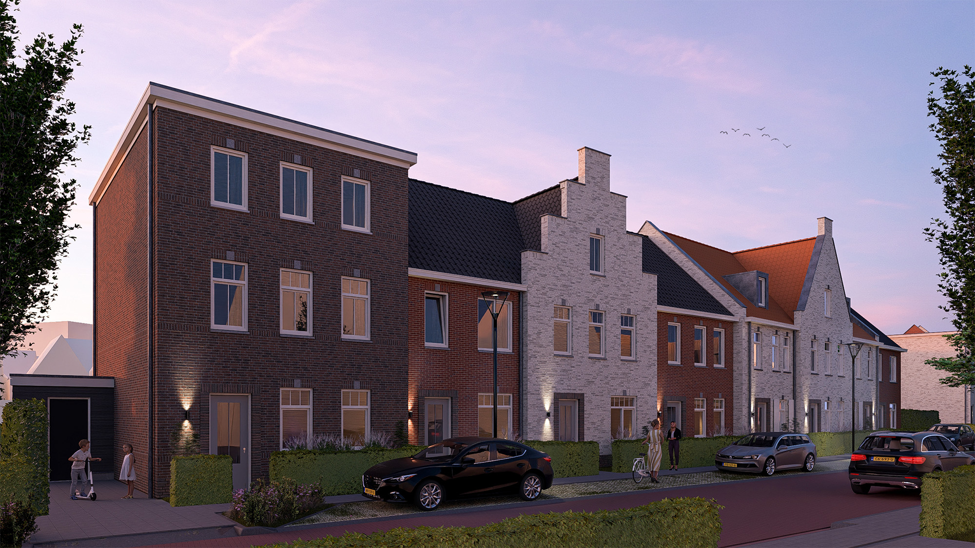 De Hoge Wei heeft een charmante uitstraling, die wordt ingegeven door een onderscheidende architectuur die de verschillende woningtypen met elkaar verbindt. Die eenheid zie je bijvoorbeeld terug in de tuitgevels, die zowel in de appartementengebouwen als in de grondgebonden woningen terugkomen. Bij de grondgebonden woningen wordt juist gevarieerd met geveltypen, kleuren en materialen. Dit geeft iedere woning een eigen identiteit, terwijl De Hoge Wei als geheel een herkenbare eenheid vormt.